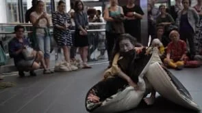 This is a 15 minute archive of the choreography and architecture of the Fulton Center piece. This performance of A Body in a Station was presented by the Lower Manhattan Cultural Council for the River To River Festival. Performed over three evenings from June 22-24, 2015, the work was created to respond to the Fulton Center as a location beyond the building.